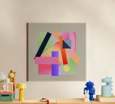 Abstract Geometric Composition with Circles Squares & Triang canvas