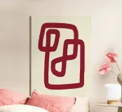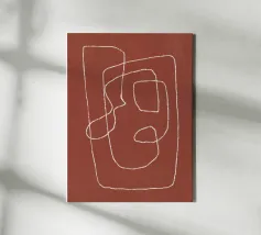 A simple, abstract design featuring interconnected red lines on a light background. The composition creates a sense of flow and movement.