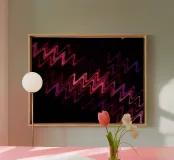 The image shows dynamic waves and patterns in the colours pink, purple and black