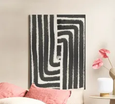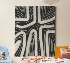 This fascinating design with curved, black lines on a cream-coloured background is reminiscent of abstract wave shapes. The dynamic composition adds energy and modern elegance to any room. Perfect for wall art, mugs, mobile phone cases, cushions and more, this pattern brings a unique, artistic touch to any living space. For lovers of minimalist and contemporary art, this design is a stylish eye-catcher and an ideal gift for creative minds.