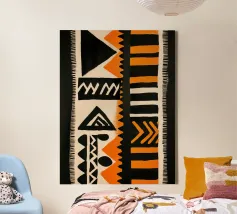 African pattern painted on the wall. In Burkina Faso. Architecture in West Africa.