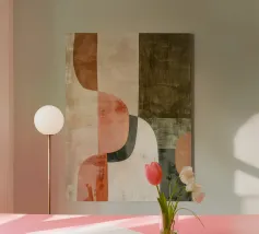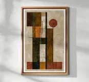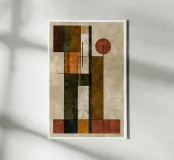 This artwork embodies the essence of Bauhaus geometry, weaving vertical and horizontal lines into a rhythmic interplay of balance and contrast. Earthy autumn hues—rust red, olive green, ochre, and warm beige—create depth and harmony across the structured grid. Minimal yet powerful, it captures the timeless dialogue between form and color, evoking both seasonal warmth and modernist clarity.