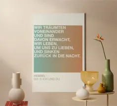 Freelancer, alternative practitioner, book junkie. Verena Selbach aka un-typical is a woman with a wide range of interests. She studied visual communication in Aachen and has been working as a freelance artist since 2009. She transforms famous poetry and literary quotations into clearly conceived, typographic prints; when she takes photographs, on the other hand, things are usually rather fast and random: The actual character of the snapshots only becomes visible after editing. Verena lives and works in her home village near Cologne.