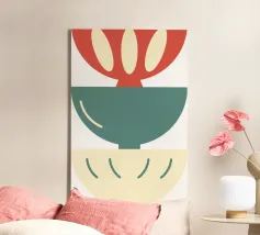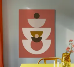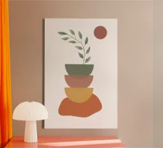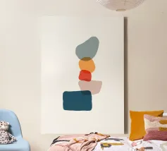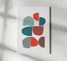 'Balancing Shapes No. 3' combines harmonious shapes to create a calm composition between lightness and stability. Soft shades of green, warm brown and bright red form a natural balance - almost like stacked stones that rest within themselves. A calm, meditative work of art for anyone who loves minimalism with warmth and expression. Perfect for: Bedrooms, living rooms, creative spaces or as part of the "Balancing Shapes" series.