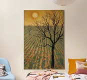 Bare Tree in Cultivated Field Under Golden Sky canvas