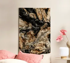 A meditative series of watercolor paintings exploring the intricate textures and tonal rhythms of tree bark. Using a muted palette of blacks, browns, and greys, each piece captures the organic flow and layered surfaces found in forest trunks. The vertical compositions echo nature’s quiet repetition, offering both structure and softness through expressive abstraction.