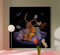 A bespectacled Beholder, surrounded by open books, dives deep into its studies with an air of intellectual curiosity. This whimsical artwork reimagines the iconic fantasy creature as a dedicated scholar, complete with playful nods to "Guide to Rays" and "Petrify for Dummies." A must-have for fantasy enthusiasts, RPG players, and anyone who appreciates a clever and humorous take on classic monsters.