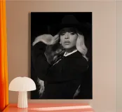 Celebrate the iconic style of Beyoncé with this stunning black and white canvas art. Perfect for music lovers and fans, this piece brings a touch of glamour to any living space.
