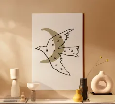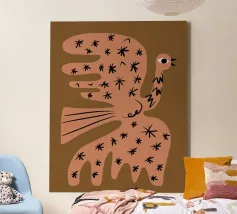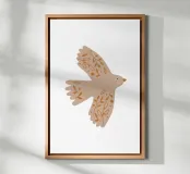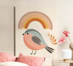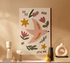 Introducing the delightful 'Bird' canvas art by KRUTH DESIGN, perfect for adding a touch of whimsy to your child's bedroom or nursery. This charming design features a beige bird adorned with floral patterns, offering a serene and comforting aesthetic that encourages imagination and creativity in young minds.
