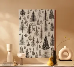A minimalist design with a clear structure: black fir trees in an even grid on a white background. This poster combines Scandinavian simplicity with graphic precision and looks modern and timeless at the same time. Perfect for lovers of minimalist art and clear shapes - ideal for modern living rooms, studies or Nordic-inspired interiors.