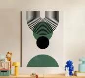 This minimalist design combines clean lines with geometric shapes in black and green tones on a light-coloured background. The harmonious arrangement of circles and arcs gives the motif a timeless and modern aesthetic. Perfect for wall murals, mugs, cushions and mobile phone covers, this design brings an elegant and calm atmosphere to any room. Ideal for lovers of boho style and Scandinavian designs - a versatile choice for decoration or as a stylish gift.