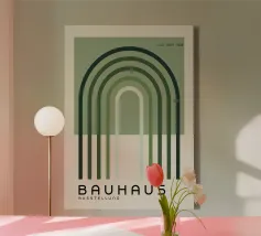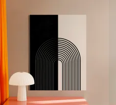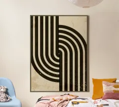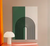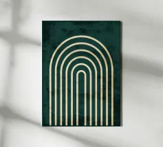 This modern design combines elegant semi-circles of black lines with a split colour scheme in green and cream. The minimalist aesthetic and clean structure make this motif an ideal choice for wall art, mugs, mobile phone cases or cushions. It adds a calm and stylish atmosphere to any room and is perfect for lovers of boho and Scandinavian designs. A timeless work of art that also makes an excellent gift.