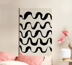 A harmonious wave pattern in black on a cream-coloured background that perfectly captures the minimalist boho style. This design is characterised by soft, flowing lines that convey calm and balance. Whether as a wall mural, cushion, mug or mobile phone cover - this abstract work of art brings elegance and modernity to any room. Ideal for design lovers looking for stylish accents and a great gift for creative minds.