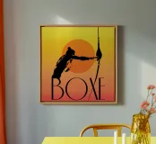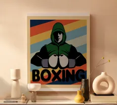 A dynamic graphic artwork capturing the essence of boxing training, a boxer, defined by strength and determination, hones their skills with a punch ball. The vivid motion and intense focus embody resilience, discipline, and the art of combat sports, inspiring all who push their limits