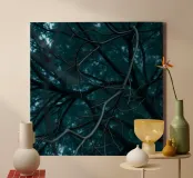 Branches intertwine against a dark, moody backdrop canvas