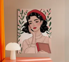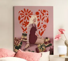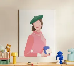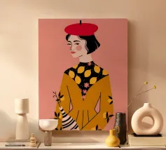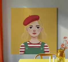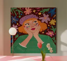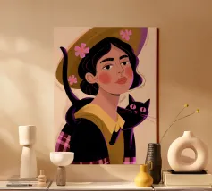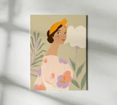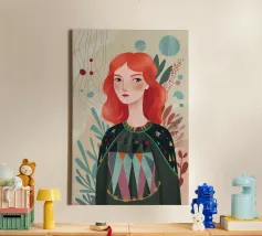 This is one of my first portrait and I like it a lot. The joyful pattern of her dress and the cute pattern on the background will bring color to your wall!
