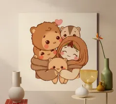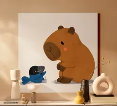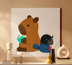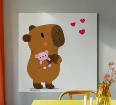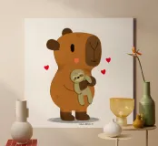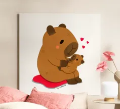 Very cute and sweet design of capybara hugging a sloth plushie toy