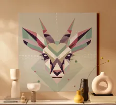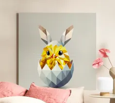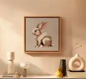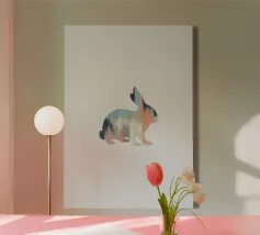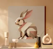 An adorable bunny in soft earthy tones and geometric shapes. The calming colour palette of beige, brown and white brings a harmonious spring mood and quiet elegance. Ideal for fresh accents at Easter or as a symbol of renewal.abstract, geometric depiction of a rabbit Soft colours in beige, brown and white Perfect for spring decorations Minimalist design with a modern twist A unique work of art that celebrates spring and Easter