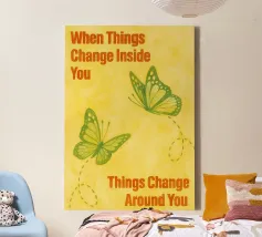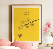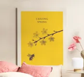 Dieses Kunstwerk von Artezza fängt den zarten Moment zwischen einer Biene und blühenden Kirschzweigen ein. Das minimalistische Design in warmem Gelb und kontrastierendem Violett vereint Naturpoesie mit moderner Ästhetik. Die feine Textur, klare Komposition und elegante Typografie machen „Chasing Spring“ zu einem ausdrucksstarken Wandschmuck – ideal für ruhige, stilvolle Räume.