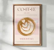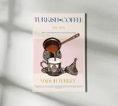 Set on a neutral, cream background, this elegant illustration of coffee adds sophistication to any kitchen, cafe or dining area. This minimalist yet informative design will spark conversation in any setting, adding a refined touch to your environment.