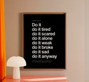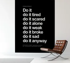 Stay driven with the "Consistency: Do It Anyway" motivational wall art. This powerful piece reminds you that success comes from persistence—whether you're tired, scared, alone, or struggling. Crafted from high-quality materials for durability and style, it’s perfect for home offices, gyms, or workspaces. A daily push to keep going no matter the obstacles, this artwork fuels determination and resilience. Ideal for those committed to their goals, it adds motivation and inspiration to any space, reinforcing the power of consistency.