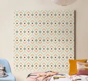 Coral and Teal Aztec Geometric Pattern canvas with Floater frame