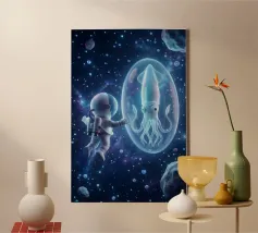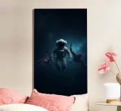 Cosmic exploration with astronaut and abstract beings canvas