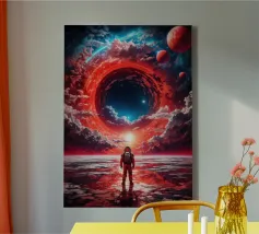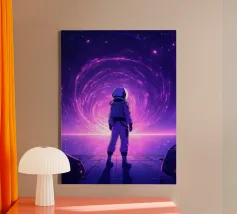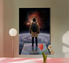 Cosmic Vision: Man Below Nebula & Space-Time Vortex Art canvas