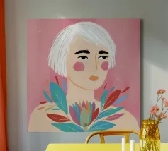 Treechild, whose real name is Nina, is an independent artist who lives with her family in Hesse. Born in Berlin, she lived in Bavaria, Switzerland and Holland for several years before moving back to Germany in 2025. Inspired by her father, a well-known Berlin painter, and her mother, a talented decorator, she grew up in a world of creativity and design. Visits to museums and exhibitions shaped her love of art from an early age. As a self-taught artist, Nina learnt drawing and photography herself. Her unique style has attracted clients such as Tchibo, Mercedes, Otto and Ikea. Treechild's work is sold worldwide - including in Dubai, India, Australia and Europe - and has been featured in magazines and on Dutch and US interior design TV shows. Working mainly digitally, Nina experiments with different styles to keep her art fresh and innovative. Her works, characterised by vibrant colours, bold perspectives and thoughtful details, reflect her passion for diversity and modern aesthetics. She is supported by her husband Florian, who manages Treechild behind the scenes.