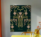 Add a touch of timeless elegance with Deco Tulip Bloom, a customizable Art Deco floral print in rich deep-forest tones. Inspired by vintage Nouveau motifs, this artwork combines refined tulip shapes with geometric symmetry for a luxurious statement piece. Personalize it with your name or a loved one’s to create a unique gift or a bespoke accent for your home. Perfect for Art Deco, floral, or modern classic interiors.