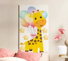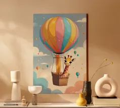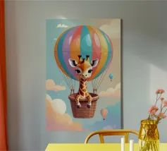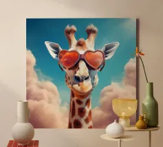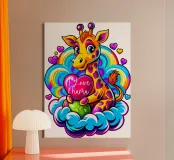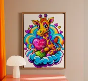 Bring home a touch of cuteness and warmth with this adorable design! Featuring a charming giraffe lovingly hugging a heart-shaped pillow on a fluffy cloud, all surrounded by vibrant rainbow hues. This playful and love-filled design is perfect for adding a cheerful vibe to any room, making it a delightful companion for cozy moments or as an eye-catching decorative piece. Perfect for: Adding a splash of fun to a child's room or as a unique gift for someone special.