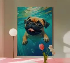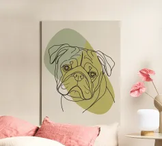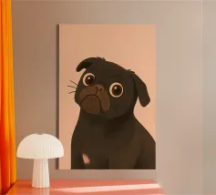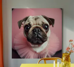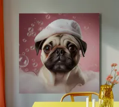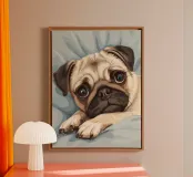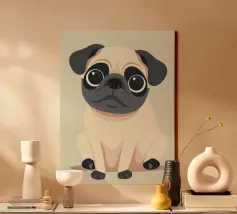 Cute pug resting on soft fabric with a thoughtful expression canvas