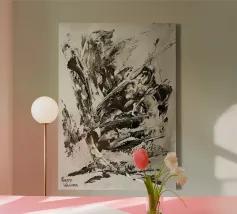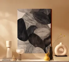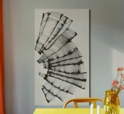 This unique work of art captivates with its flowing lines and the subtle dynamism it radiates. The black and grey stripes fan out artfully, reminiscent of the movements of a butterfly or the swing of a dance. Ideal for minimalist interiors, this piece of art is a real eye-catcher and adds elegance and movement to any room.