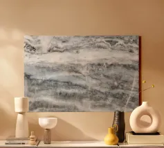 Luxurious gray marble displays intricate swirling patterns and varying shades, ideal for interior decor or design projects, showcasing its timeless beauty and elegance.