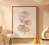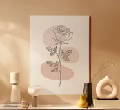 This minimalist design highlights the timeless elegance of the rose, drawn in a subtle continuous line. Combined with organic shapes in powder pink, this delicate composition evokes beauty, romance and simplicity. Perfect for a modern, feminine or Zen décor, this floral design will add a soft, refined artistic touch to any interior space.