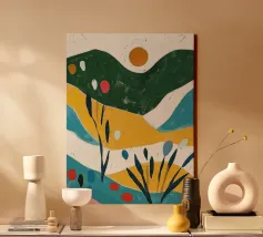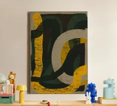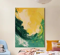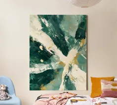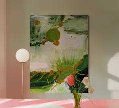 A poetic fusion of abstract brushwork and organic detail, “Circle of Stillness” evokes a sense of calm movement through its circular stroke and rooted greenery. The textured composition dances between natural serenity and artistic spontaneity—perfect for interiors that seek balance, depth, and quiet expression.