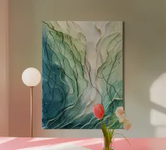 A captivating abstract painting featuring a swirling vortex of emerald green hues, accented by metallic gold accents and textured patterns. The artwork evokes a sense of depth and movement, drawing the viewer into its mesmerizing depths.