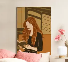A person sits on the grass in a serene forest, engrossed in a book. Warm golden light filters through the trees, creating a magical and tranquil atmosphere.