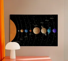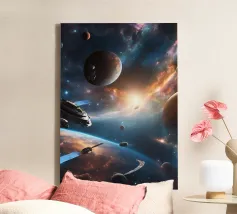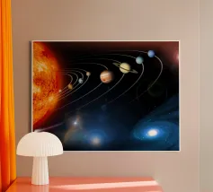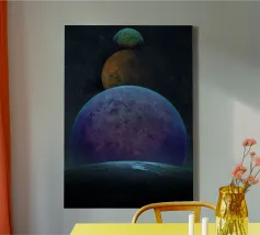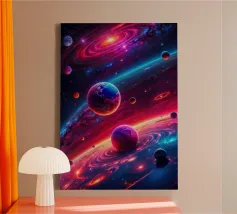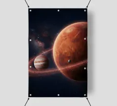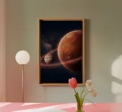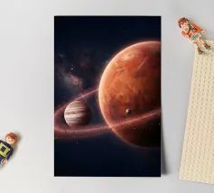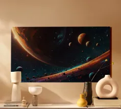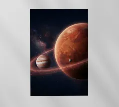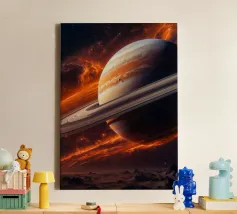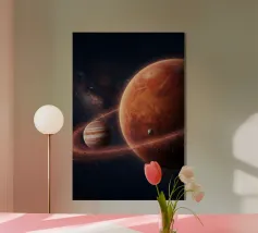 Immerse yourself in the beauty of the cosmos with this stunning deep-space artwork featuring a dramatic planetary alignment. Rich orange textures, swirling clouds, glowing rings, and distant stars create a vivid sci-fi atmosphere. Perfect for space lovers, astronomy fans, and anyone who enjoys bold, futuristic wall art. This design adds a sense of wonder, exploration, and cosmic mystery to any room—ideal for modern interiors, offices, studios, or inspirational creative spaces.