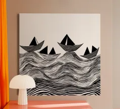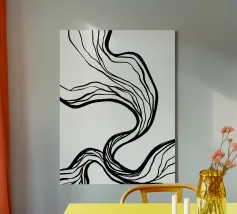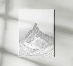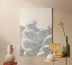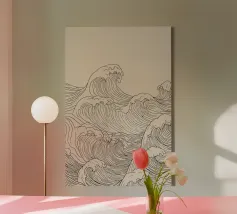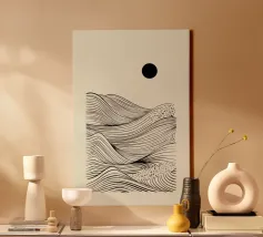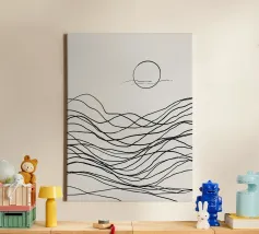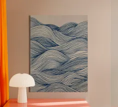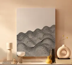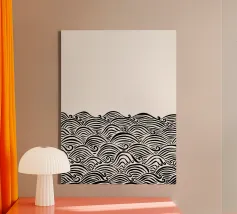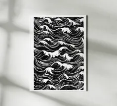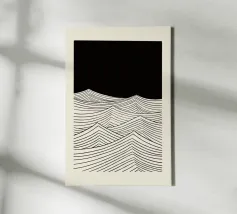 This artwork combines hypnotic lines with gentle, rhythmic wave patterns reminiscent of the endless ebb and flow of the ocean. The monochrome design reinforces the calming, almost meditative effect of the repetitive lines, which combine to form organic, flowing shapes. The clear structure and gentle curves create a harmonious balance between movement and stillness.