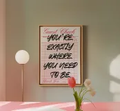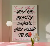 Find your perfect place with our "Exactly Where You Need To Be" Guest Check poster. This unique artwork reimagines a classic pink diner guest check, transforming it into a powerful and reassuring message in bold, impactful script. It's an inspiring and grounding piece, perfect for adding a touch of motivation and confidence to your kitchen, office, or personal space. Our digital art is meticulously crafted at 7000x5000 pixels resolution with 300 dpi, ensuring exceptional clarity and a beautiful, high-quality finish for your premium poster, making it a truly unique and meaningful decor item.