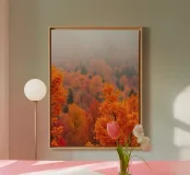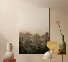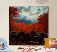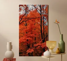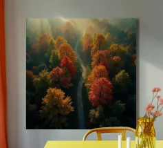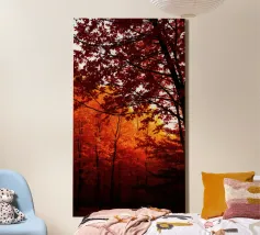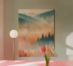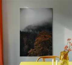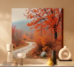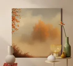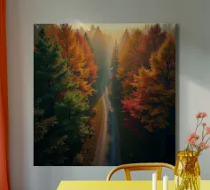 fall foliage creating a stunning backdrop in a misty forest canvas