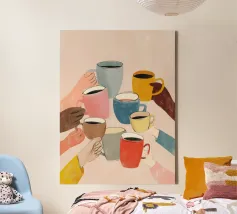 Stacked Colorful Coffee Mugs In Cozy Modern Illustration