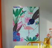 Flamingo with kite and banana tree summer time canvas