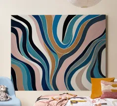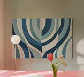 A bold abstract pattern with a touch of dynamic energy that symbolises movement and fluidity. Bright colours to evoke themes such as water, life and movement. An innovative fusion of tradition and modernity for contemporary, minimalist interiors. A unique visual language that transcends cultural boundaries.