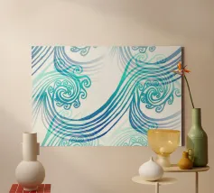 A bold abstract pattern with a touch of dynamic energy that symbolises movement and fluidity. Bright colours to evoke themes such as water, life and movement. An innovative fusion of tradition and modernity for contemporary, minimalist interiors. A unique visual language that transcends cultural boundaries.