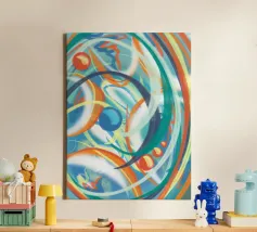 A bold abstract pattern with a touch of dynamic energy that symbolises movement and fluidity. Bright colours to evoke themes such as water, life and movement. An innovative fusion of tradition and modernity for contemporary, minimalist interiors. A unique visual language that transcends cultural boundaries.