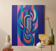 A bold abstract pattern with a touch of dynamic energy that symbolises movement and fluidity. Bright colours to evoke themes such as water, life and movement. An innovative fusion of tradition and modernity for contemporary, minimalist interiors. A unique visual language that transcends cultural boundaries.
