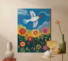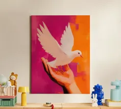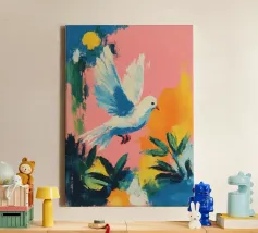 Floral Abstract Dove Poster, Pastel Wall Art, Birth Print canvas