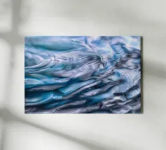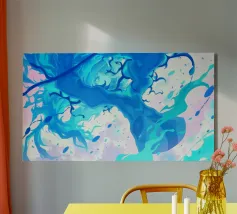 Flowing blues create an abstract wave effect in dynamic art canvas